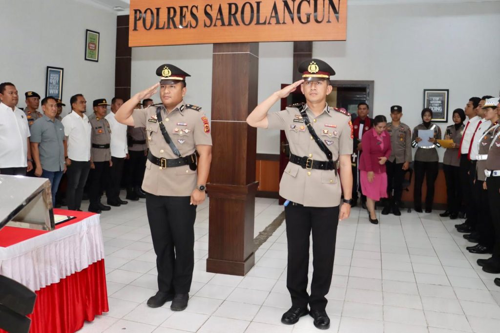 Kepada pejabat lama, AKP Rio Renaldy Siregar, S.TK, S.I.K., Kapolres menyampaikan apresiasi dan penghargaan atas pengabdian selama bertugas di Polres Sarolangun.