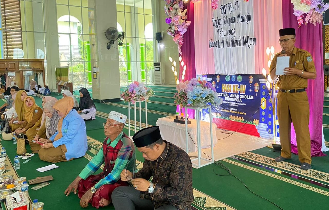 H.M Syukur diwakili Irsadi, Staf Ahli Bupati Merangin Bidang Keuangan, Pengembangan Ekonomi dan Pembangunan, membuka Festival Anak Sholeh Indonesia (FASI) ke-4, di Masjid Baitul Makmur,Selasa (23/9/2025).