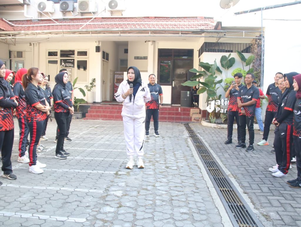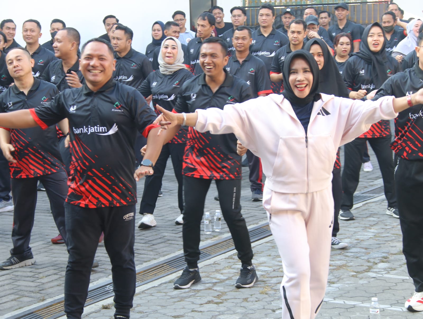 SIDOARJO | JWI – Wakil Bupati Sidoarjo, Hj. Mimik Idayana, mengapresiasi peran serta Bank Jatim Cabang Sidoarjo dalam mendukung pelaku Usaha Mikro, Kecil, dan Menengah (UMKM) di wilayahnya. Hal itu disampaikan saat menghadiri agenda rutin senam bersama pegawai Bank Jatim di halaman parkir kantor cabang setempat, Jumat (26/9/2025).