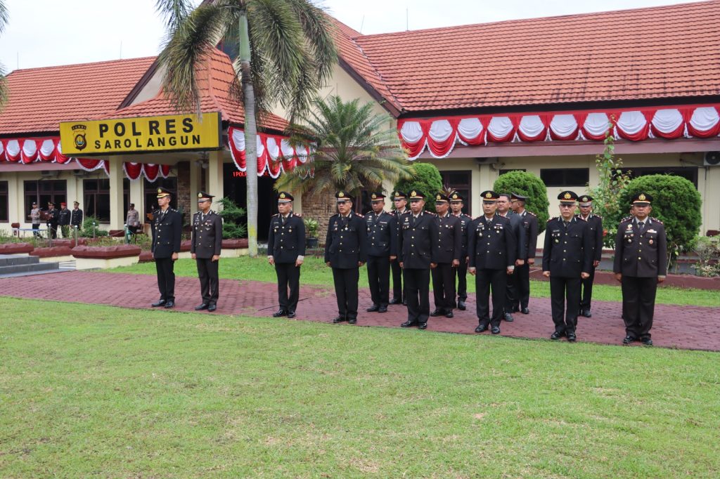 Upacara dimulai pukul 07.00 WIB dengan Wakapolres Sarolangun Kompol Aswindo Indriadi, S.Kom, MH. bertindak sebagai inspektur upacara, sementara Ipda Benhar Pandiangan, SH. dipercaya sebagai komandan upacara. Peserta upacara terdiri dari Pejabat Utama (PJU), para Kapolsek jajaran Polres Sarolangun, personel kepolisian, serta Aparatur Sipil Negara (ASN) di lingkungan Polres.