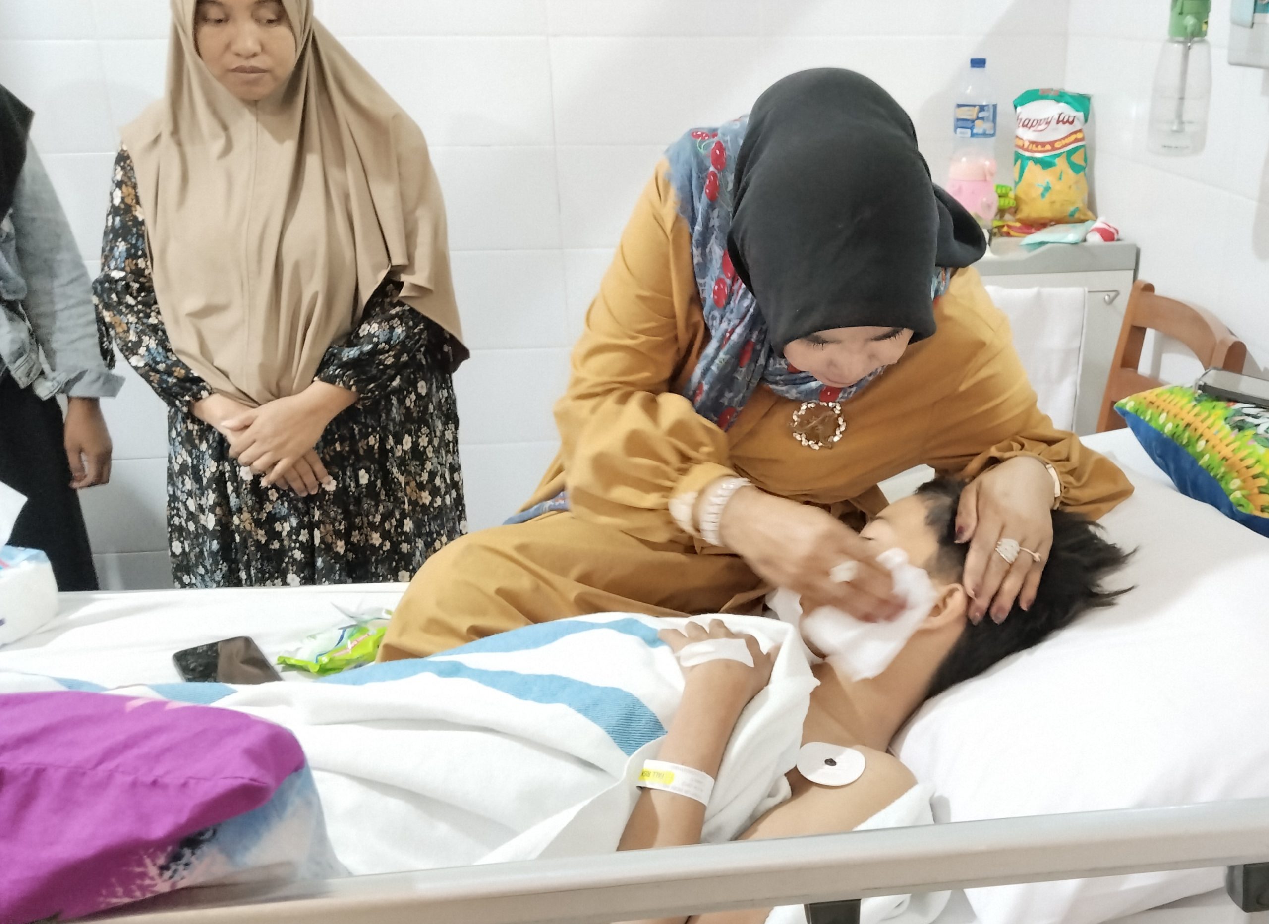 “Rozi harus tetap kuat dan semangat, masa depanmu masih panjang, Nak. Kalau nanti sudah sembuh, Rozi mau dibelikan apa?” tanya Wabup sembari menyuapi minum dengan sedotan.