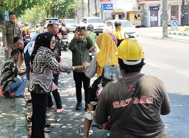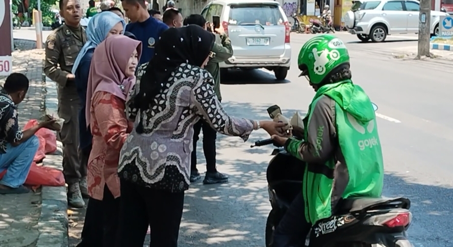 Dalam kegiatan yang berlangsung penuh keakraban itu, Wabup Hj. Mimik Idayana turun langsung ke jalan bersama timnya untuk membagikan nasi bungkus kepada para pengendara motor, tukang becak, hingga masyarakat sekitar. Tak sedikit warga yang tampak antusias menerima bingkisan sederhana tersebut.