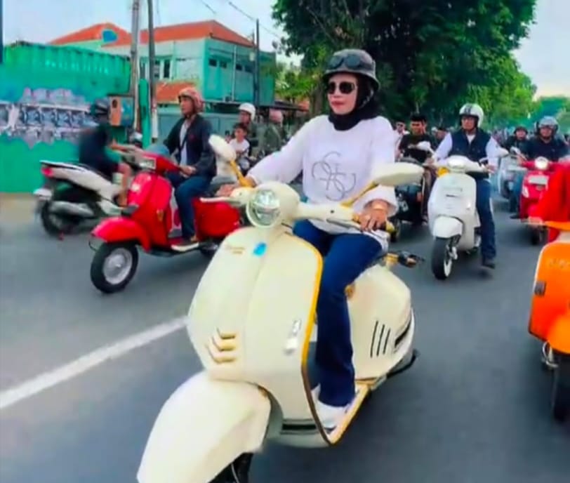 Kegiatan sosial ini diinisiasi oleh komunitas Scooter Club Sidoarjo sebagai bentuk kepedulian terhadap dunia pendidikan pesantren, sekaligus menanamkan semangat berbagi di momentum Hari Santri. Menariknya, Wakil Bupati Sidoarjo Hj. Mimik Idayana turut hadir dan ikut memimpin barisan touring dengan mengendarai Vespa Piaggio 946 seri terbaru, menyusuri rute dari Alun-Alun – TF Pucang – TF Magersari – Transmart – Lapangan Tembak – Fly Over Buduran – TF Comfeed – hingga finish di Ponpes Al-Khoziny.