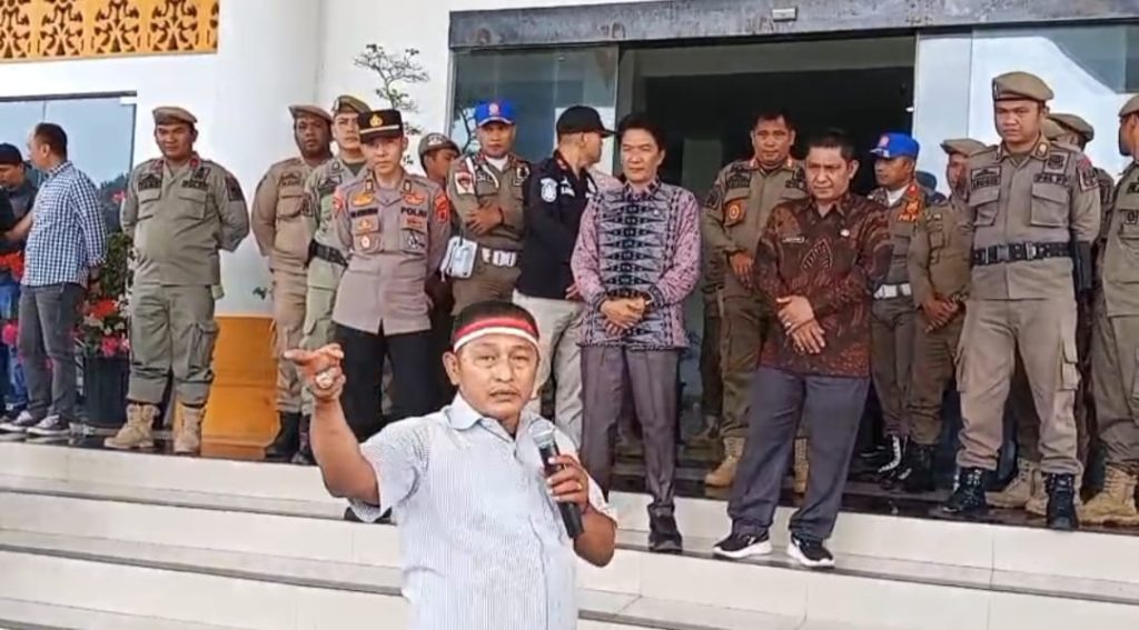MERANGIN | JWI – Aliansi Masyarakat Bersatu Peduli Merangin (AMBPM) menggelar aksi demonstrasi di depan Kantor Bupati Merangin, Kamis (23/10/2025). Aksi tersebut digelar sebagai bentuk protes dan penyampaian aspirasi masyarakat terkait dugaan penyalahgunaan dua unit kendaraan dinas milik pemerintah daerah.