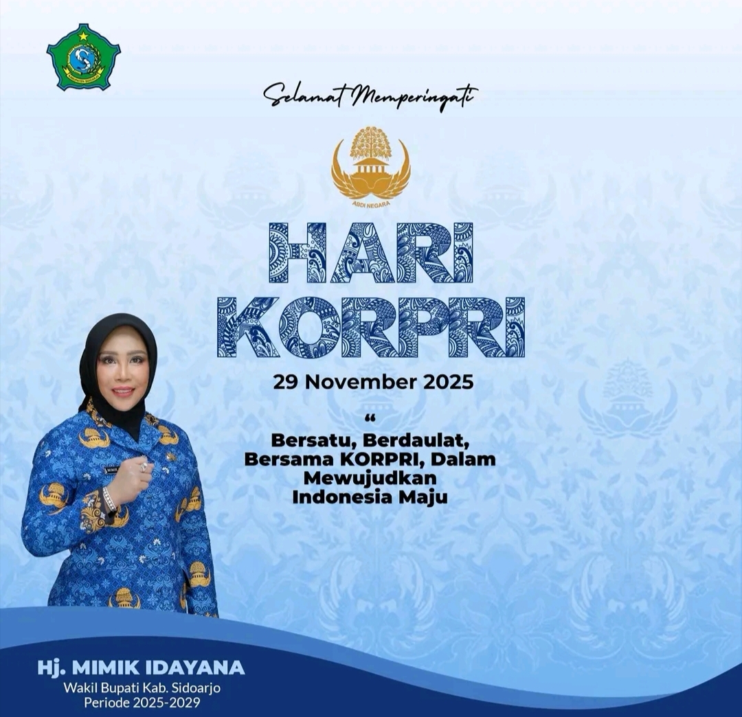SIDOARJO | JWI – Memperingati Hari Korps Pegawai Republik Indonesia (KORPRI) ke-54, Wakil Bupati Sidoarjo, Hj. Mimik Idayana, menyampaikan ucapan selamat dan apresiasi kepada seluruh aparatur sipil negara (ASN) yang selama lebih dari setengah abad menjadi ujung tombak pelayanan kepada masyarakat. Melalui penyampaian resminya di momentum peringatan Hari KORPRI 2025 ini, beliau menekankan bahwa dedikasi, loyalitas, serta integritas ASN menjadi fondasi penting dalam perjalanan pembangunan daerah maupun nasional.