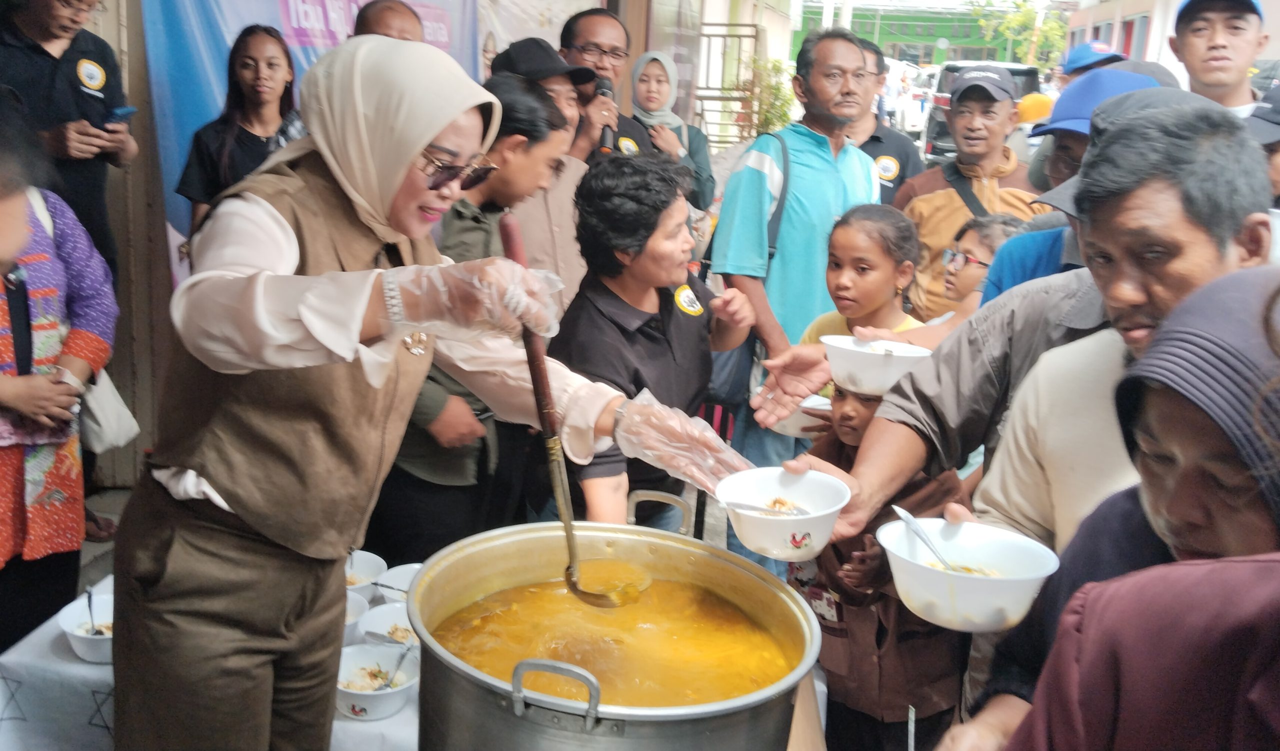 SIDOARJO | JWI – Wakil Bupati Sidoarjo, Hj. Mimik Idayana, menghadiri kegiatan bakti sosial Makan Gratis Sehat dan Bergizi yang digelar di Dapur Umum Yayasan Kasih Anugrah Besar (YKAB), Blukid Square, Kecamatan Sidoarjo, Sabtu (13/12/2025). Kegiatan ini menyasar masyarakat prasejahtera, termasuk pengemudi ojek online (ojol) dan warga kurang mampu.