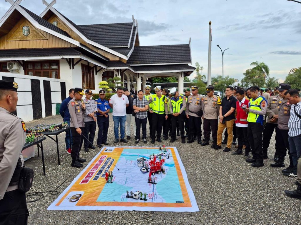 Kegiatan tersebut melibatkan unsur gabungan TNI, Polri, Pemerintah Daerah, serta instansi terkait, antara lain Yonif TP 896/SP, Satpol PP, Dinas Perhubungan, BPBD, dan Basarnas. Sebanyak 300 personel disiagakan untuk mengamankan seluruh rangkaian kegiatan malam pergantian tahun.