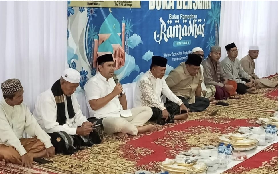 BANGKO | JWI – Bupati Merangin M. Syukur didampingi Wakil Bupati A. Khafidh menggelar buka puasa bersama para imam masjid di Pendopo Rumah Dinas Bupati, Selasa (3/3/2026).