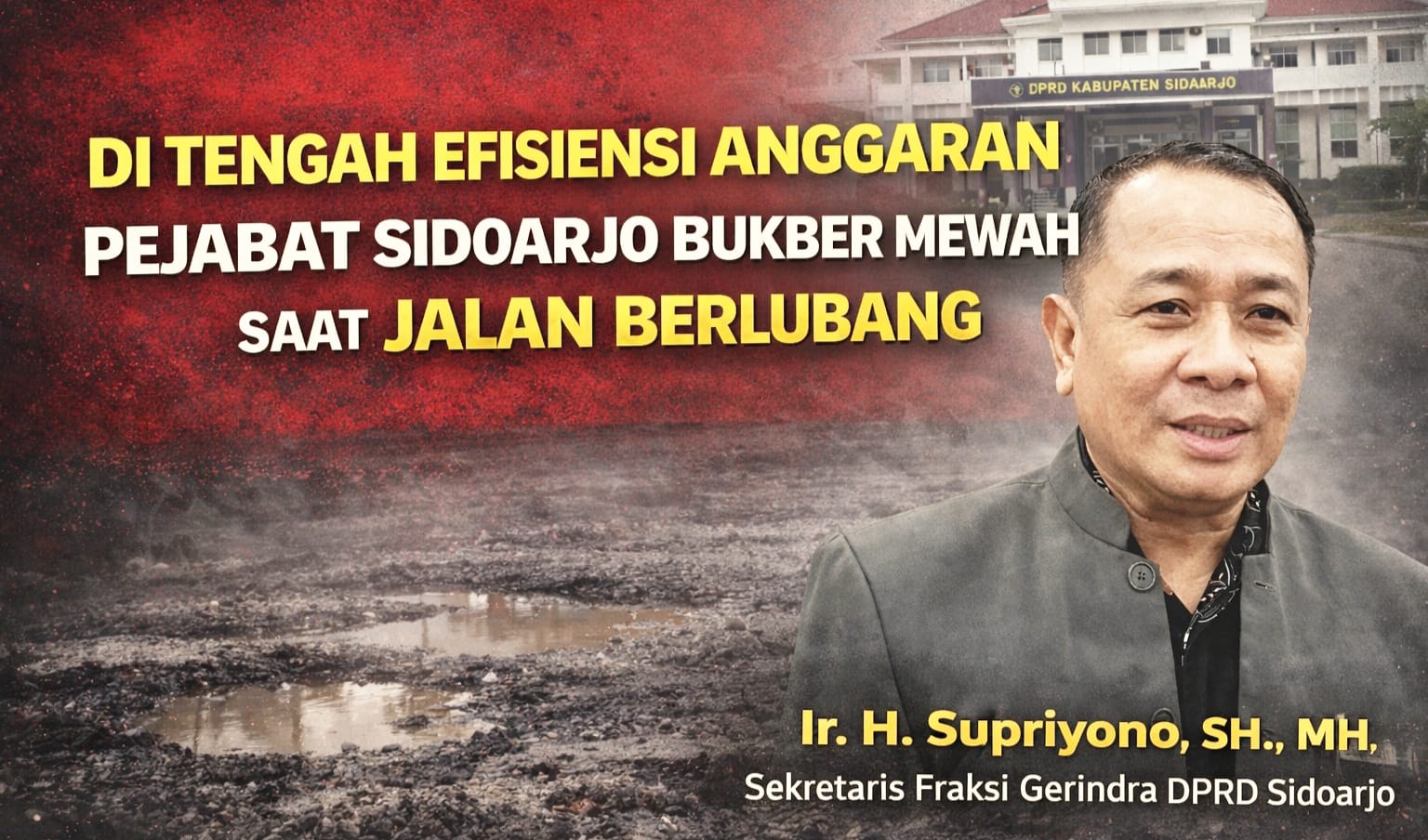 SIDOARJO | JWI – Fraksi Gerindra melalui Sekretaris Fraksi Ir. H. Supriyono, SH., MH. menyampaikan keprihatinan dan kritik terhadap pelaksanaan kegiatan rapat koordinasi sekaligus buka puasa bersama Pemerintah Kabupaten Sidoarjo yang digelar di lokasi yang dinilai mewah di Surabaya, Minggu (8/3/2026).