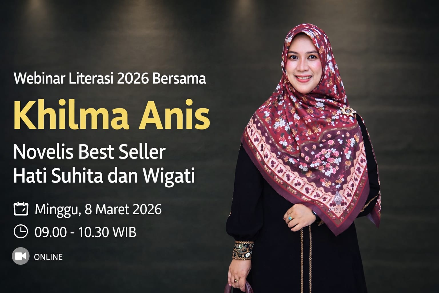 Webinar bertema semangat berkarya tersebut menghadirkan penulis novel Hati Suhita dan Wigati untuk berbagi pengalaman serta proses kreatif dalam menghasilkan karya sastra yang kuat secara nilai, budaya, dan spiritualitas.
