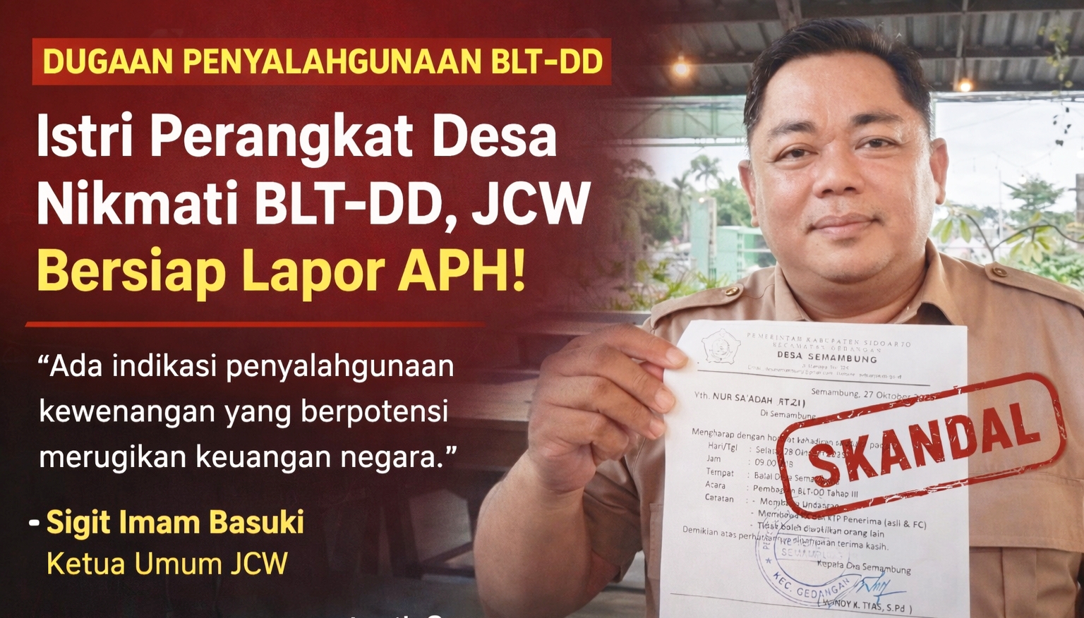 SIDOARJO | JWI – Dugaan penyimpangan penyaluran Bantuan Langsung Tunai Dana Desa (BLT-DD) di Desa Semambung, Kecamatan Gedangan, Kabupaten Sidoarjo, mencuat dan menjadi sorotan publik.