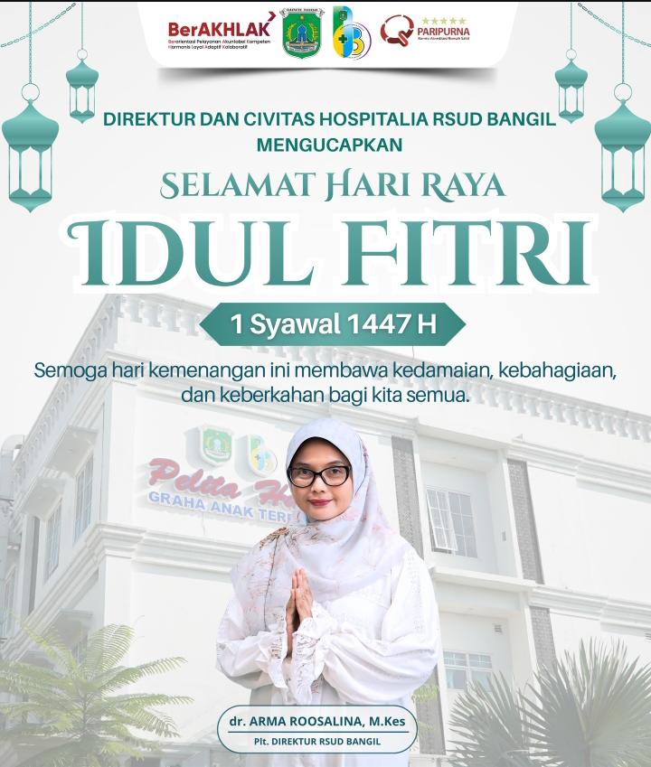 PASURUAN | JWI – Segenap keluarga besar Rumah Sakit Umum Daerah (RSUD) Bangil menyampaikan ucapan Selamat Hari Raya Idul Fitri 1447 Hijriah/2026 Masehi kepada seluruh masyarakat.