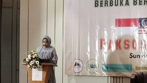 Dalam sambutannya, Hj. Mimik Idayana menyampaikan rasa syukur atas kesempatan bisa hadir dan berkumpul bersama anak-anak yatim serta jamaah Majelis Ta’lim Qurrota A’yun.