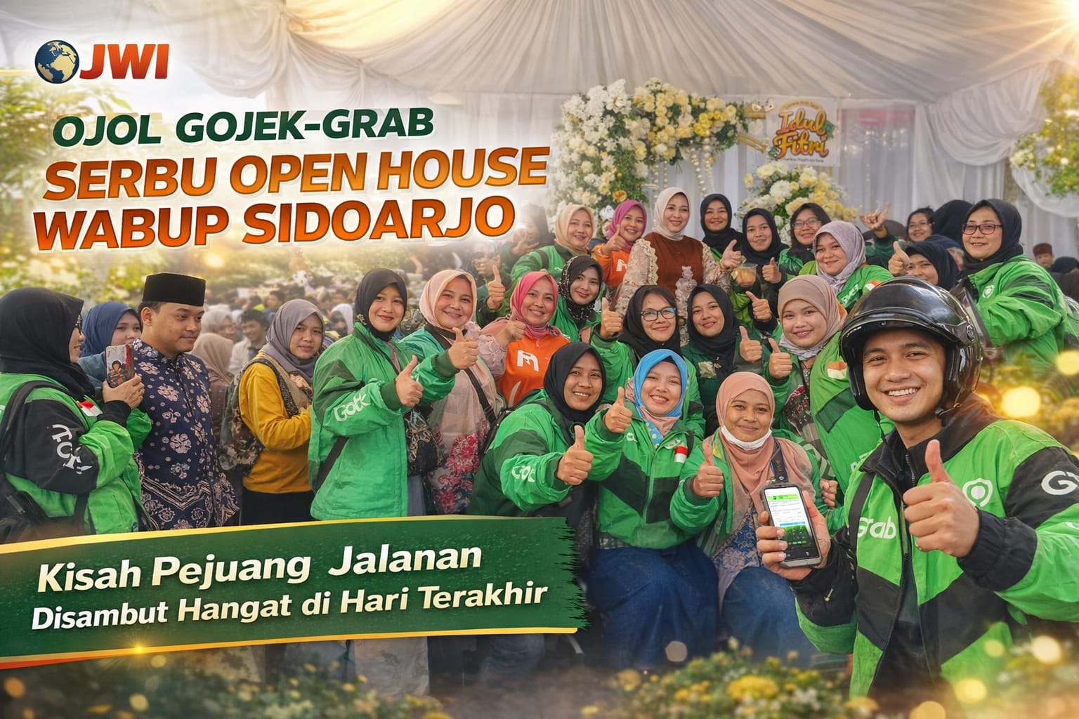 Di hari terakhir open house Wakil Bupati Sidoarjo, Hj. Mimik Idayana, pemandangan berbeda terasa: ratusan komunitas ojek online (ojol) dari Gojek dan Grab datang, bukan sekadar bersilaturahmi, tetapi membawa cerita perjuangan jalanan.