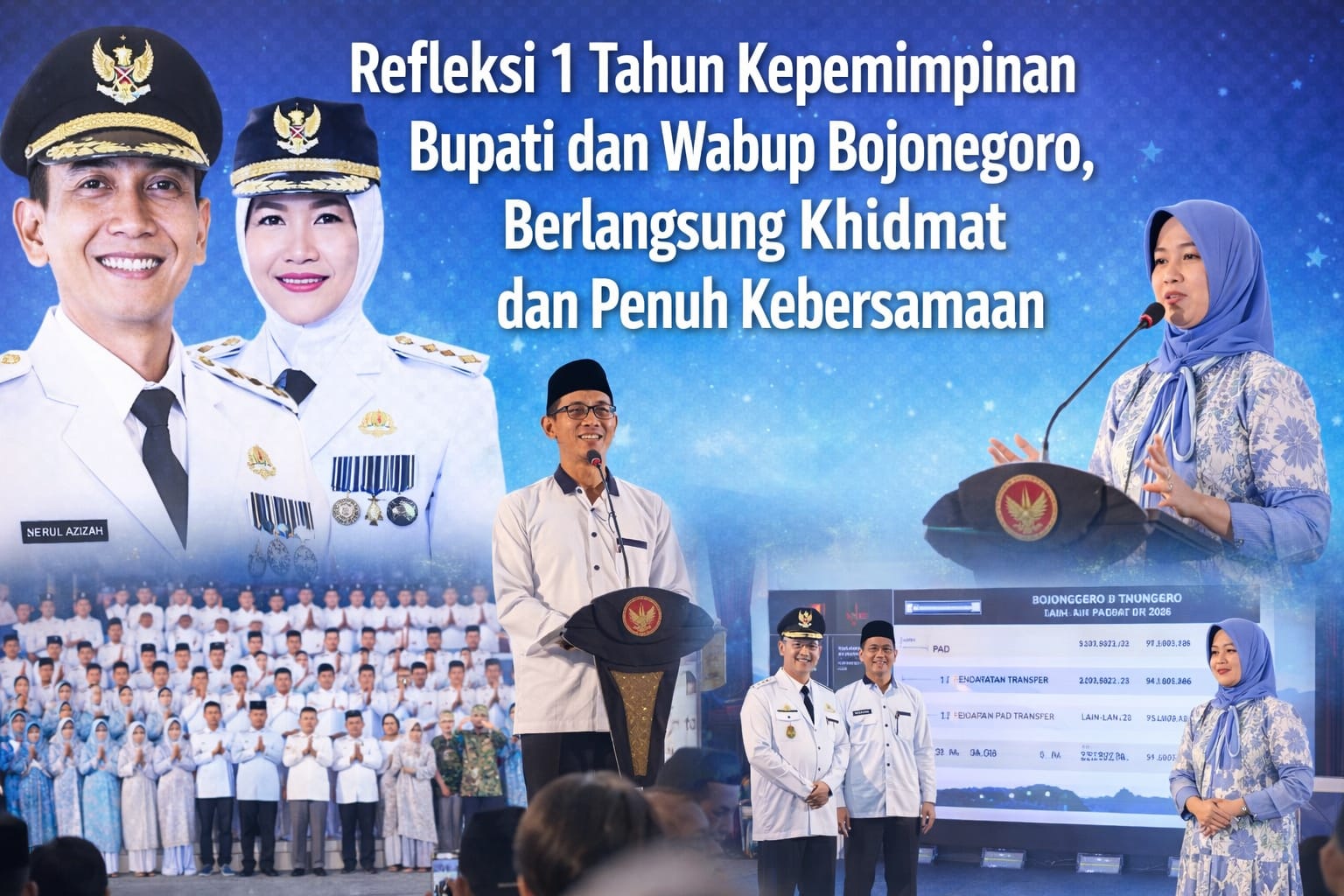 Refleksi satu tahun kepemimpinan ini diharapkan menjadi penguat komitmen pemerintah daerah dalam mewujudkan pembangunan yang inklusif dan berkelanjutan, sekaligus mempererat hubungan antara pemerintah dan masyarakat Bojonegoro.(SG).