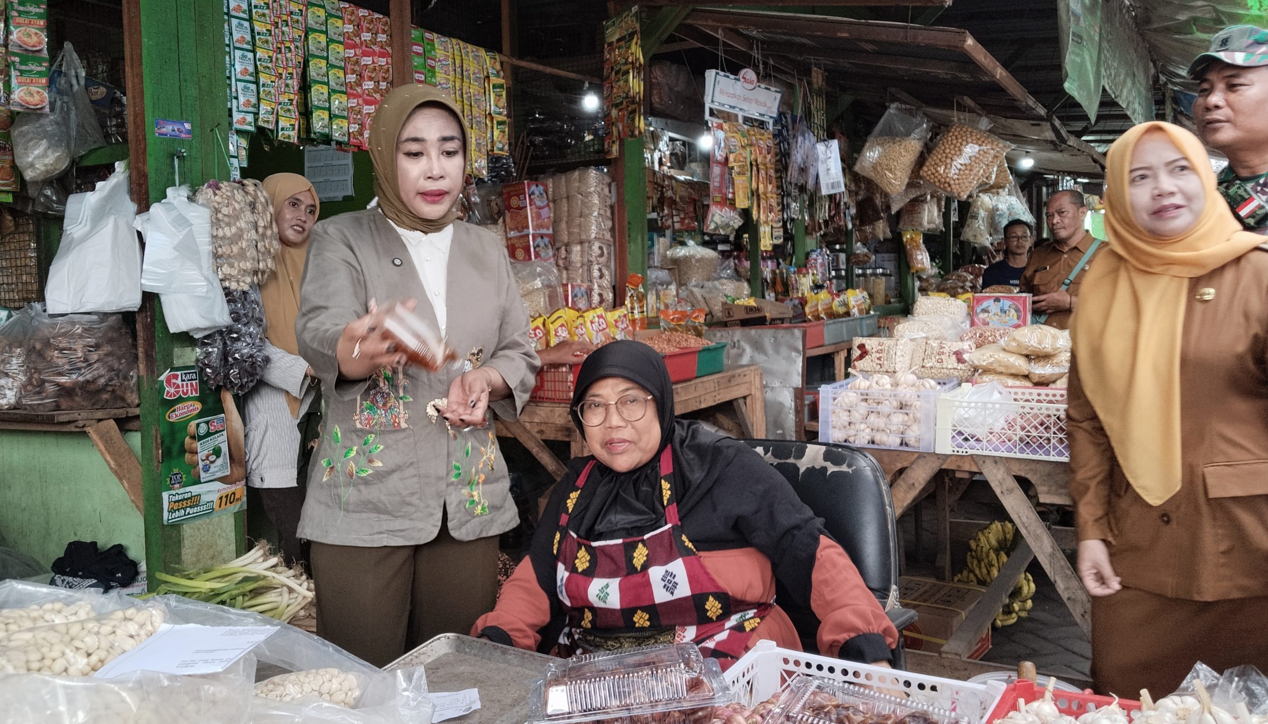 Dalam dialog langsung dengan para pedagang, Wabup Mimik memantau perkembangan harga kebutuhan pokok serta daya beli masyarakat. Berdasarkan hasil pemantauan di lapangan, harga sembako terpantau relatif stabil dan belum mengalami kenaikan signifikan.